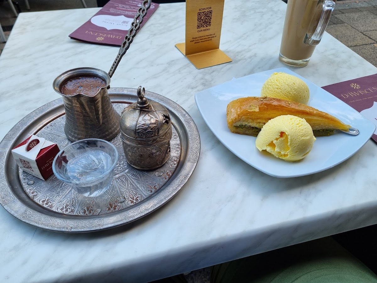 My partner and I have visited Damascena a number of times, even their Harborne branch. We’ve loved it from the first time we visited, such a wonderful selection of drinks and food, and all of what we’ve tried we’ve been really impressed with on the whole. In particular, their coffee, (flat white and Americano are wonderful) we have also loved the mint tea, cardamom tea and the saffron latte! Their desserts have been enjoyable too, my favourite however, is the Knafe brownie. The pistachio cheesecake didn’t have a distinct pistachio flavour which was a little disappointing. The savoury options are really well priced, and you receive great portions! The Harira soup had a wonderful depth to it and their flatbread options with mince meat are always a yummy lighter option! We’ll be leaving the Birmingham area soon and we’re sad that we can’t find it in other cities. It’s been a great place to spend time together in the city, with wonderful decor that made it feel like an escape from the city, thank you.